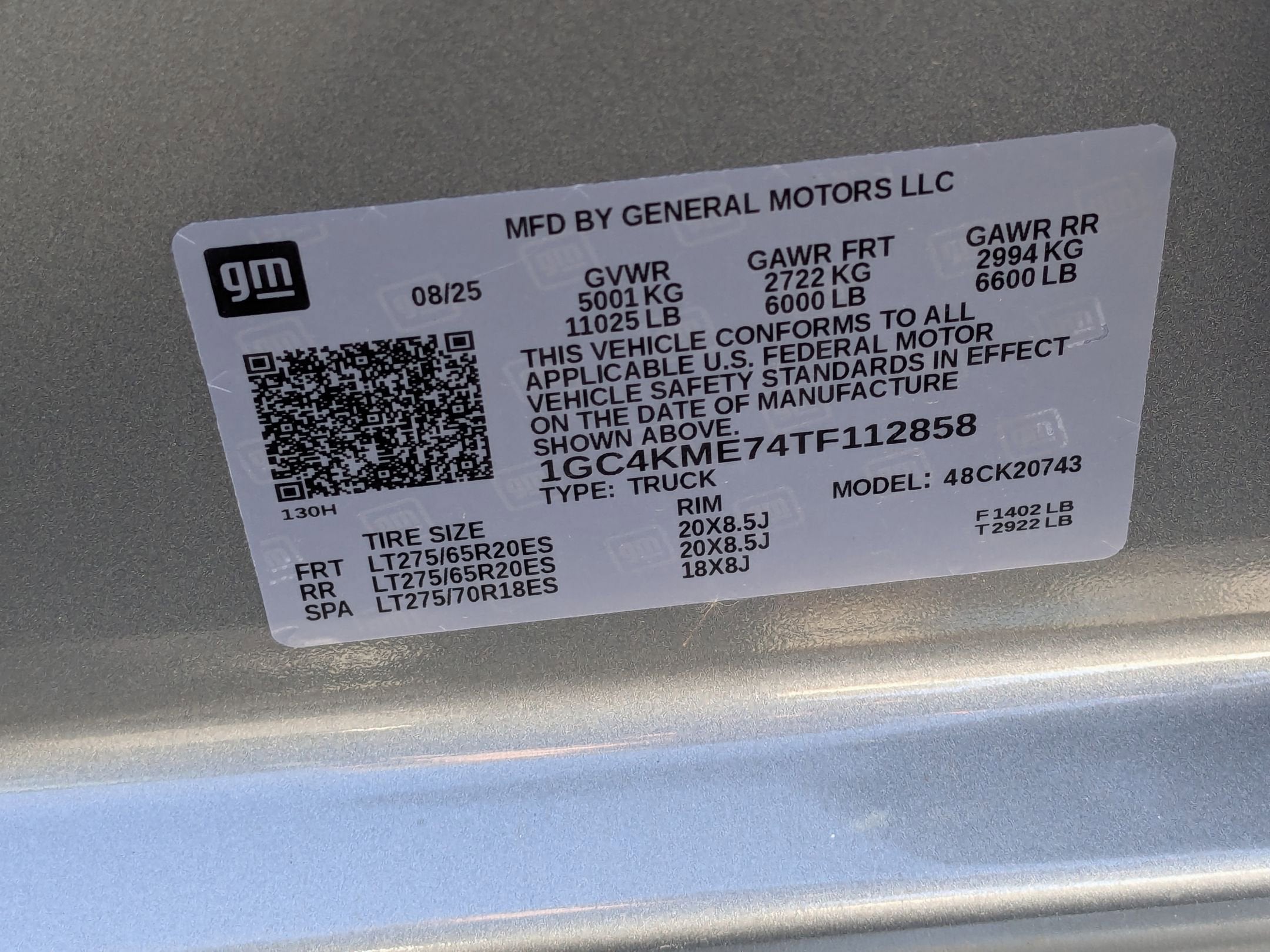 - 18" LT275/70R18 all-terrain, blackwall spare tire