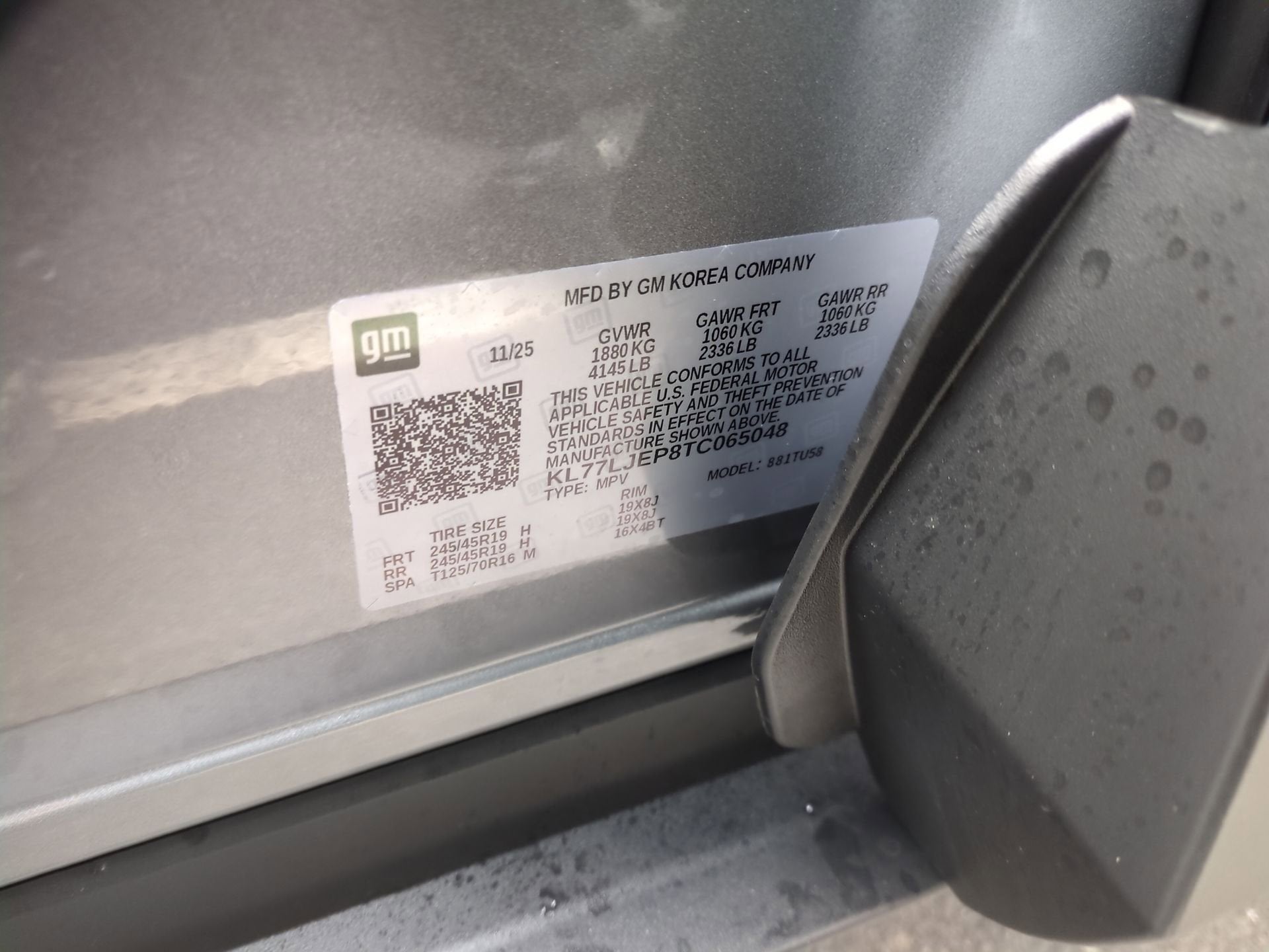 - Tires, 245/45R19 all-season, blackwall