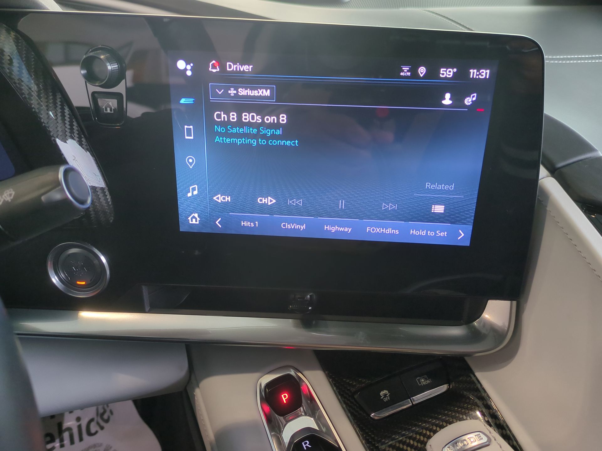 - A sporty handshake. The leather/carbon fiber steering wheel has sections of leather and carbon fiber for a firm and stylish grip.